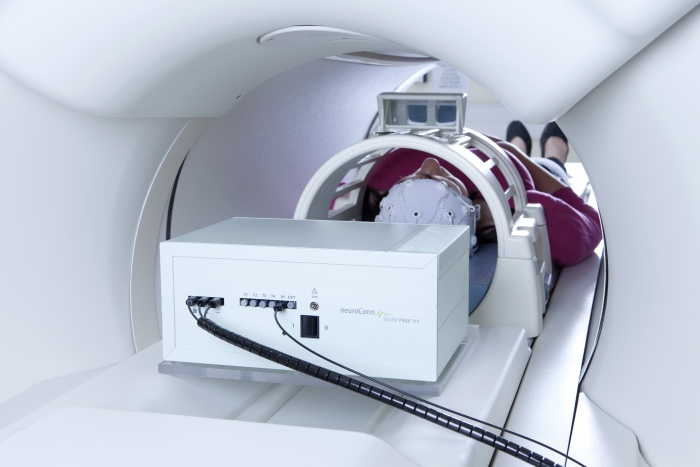 The high amplifier dynamics and the integrated real-time correction of gradient artifacts and pulse artifacts make the NEURO PRAX® MR system particularly suitable for measurement during magnetic resonance imaging (fMRI).